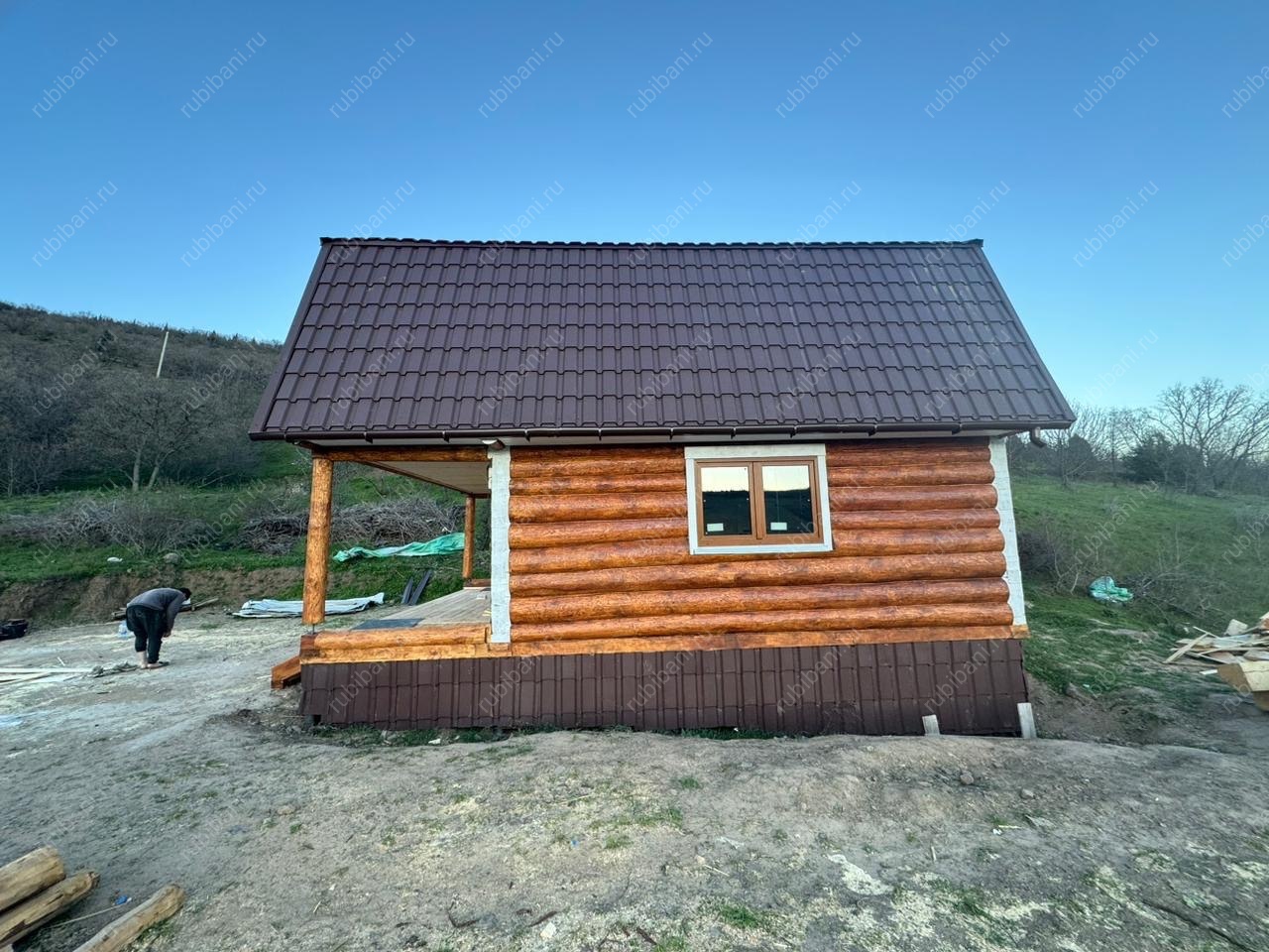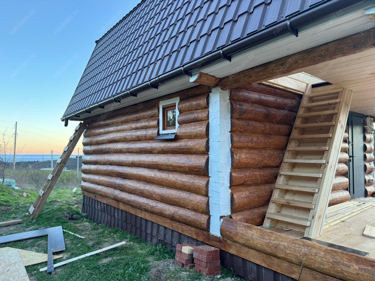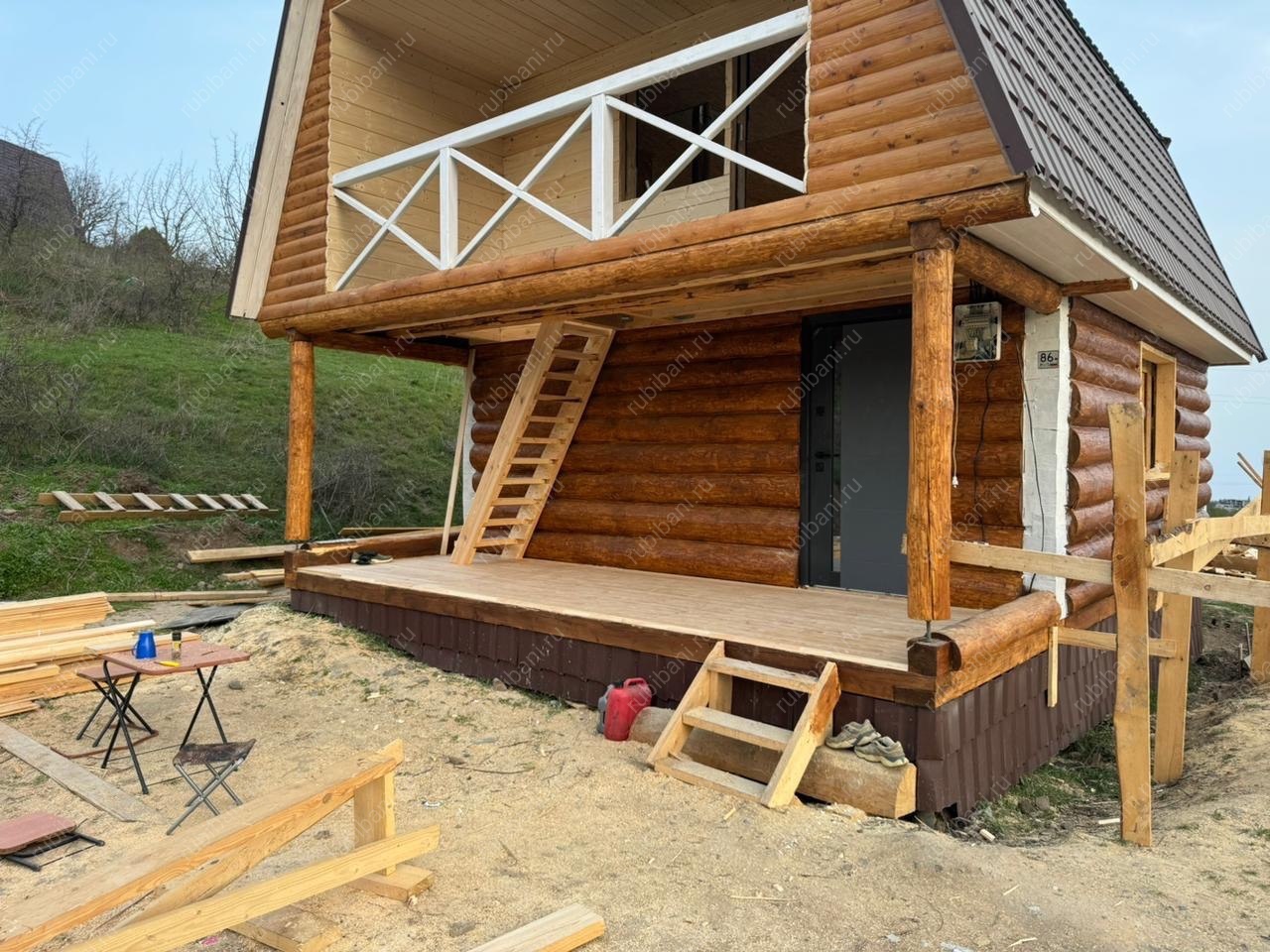 В нашем портфолио представлен уникальный проект — дом-баня с террасой, выполненный по технологии сруба в лапу. Этот проект стал воплощением гармонии между комфортом и природой, идеально вписываясь в окружающий ландшафт. Размеры дом-бани обеспечивают достаточно пространства для отдыха и релаксации.