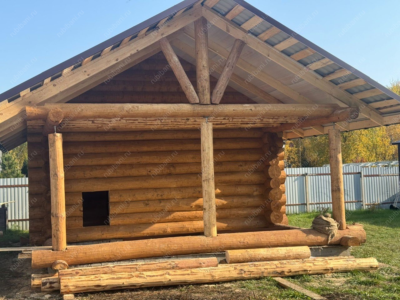 - Сруб бани — пятистенок из бревна хвойных пород древесины (сосна, ель) диаметром 220-300 мм — внутри тесанный (полулафет)